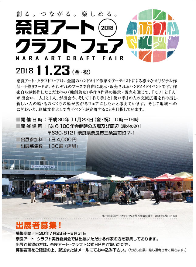春の奈良アートクラフトフェアの募集を開始いたしました。